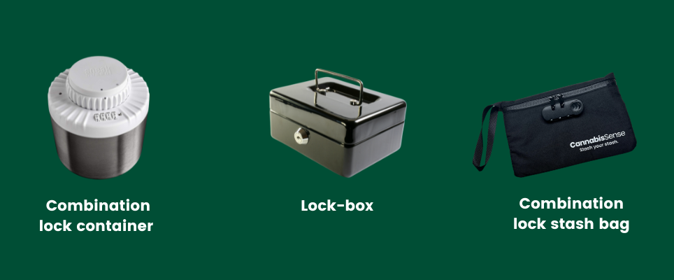 Legal cannabis retailers sell a variety of lockable and secure storage options—visit here for a full list of cannabis licensees.
