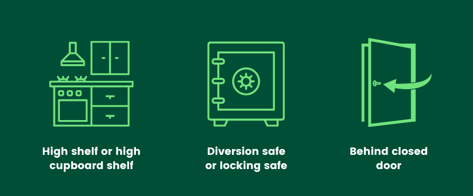 Storing cannabis away from kids, teens and pets is about more than just safety—it’s about peace of mind as there are some serious health risks if kids or pets consume it.
